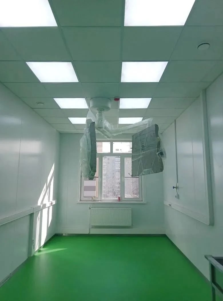 В помещениях установлены современные операционные светильники, в настоящее время ведутся активные работы по установке и подключению остального оборудования, а также по оснащению корпуса специализированной мебелью.