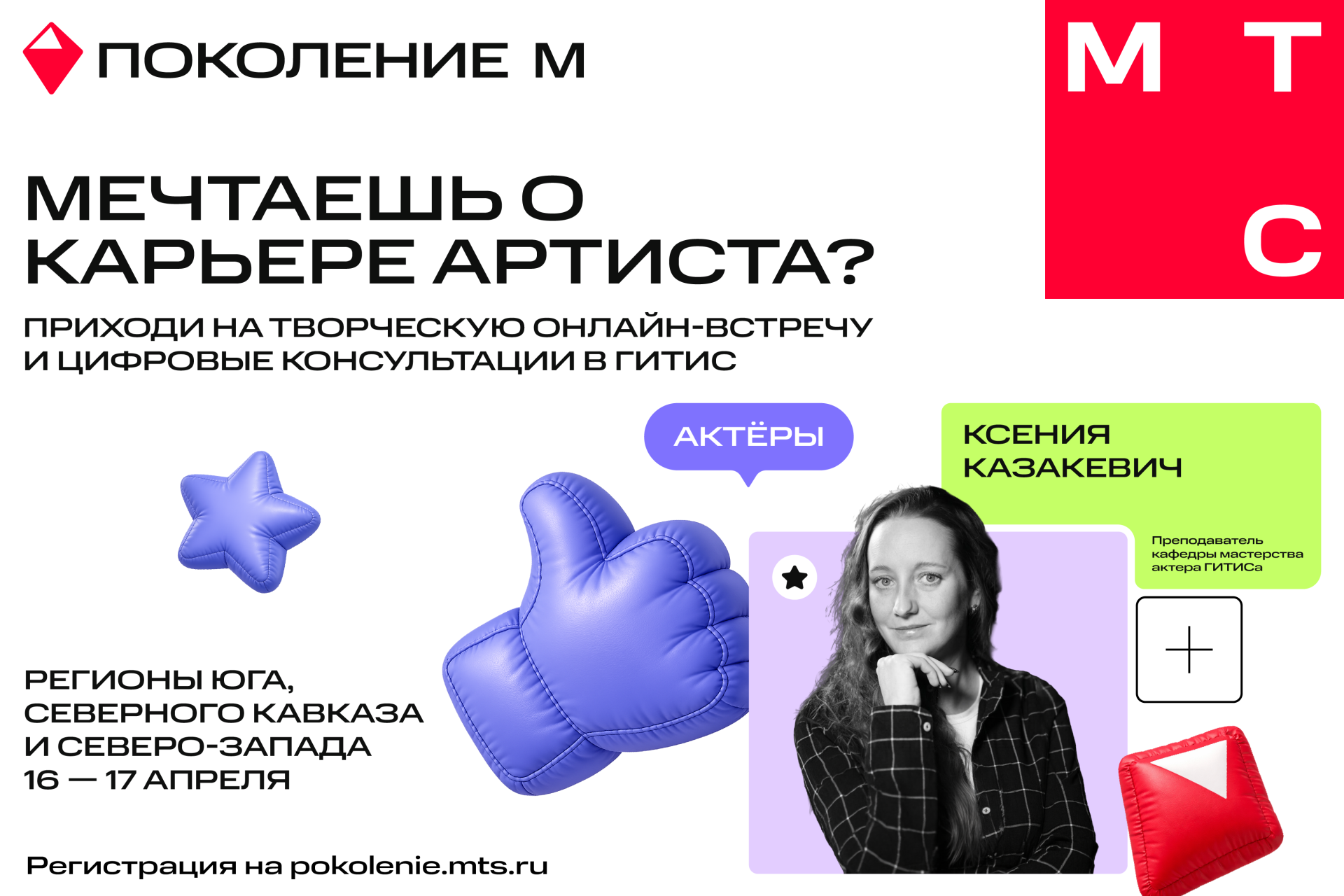 Сотрудничество МТС и ГИТИСа в рамках образовательного проекта "Поколение М" дает возможность абитуриентам со всей страны страны попробовать силы в первичном отборе на актерский факультет театрального вуза.