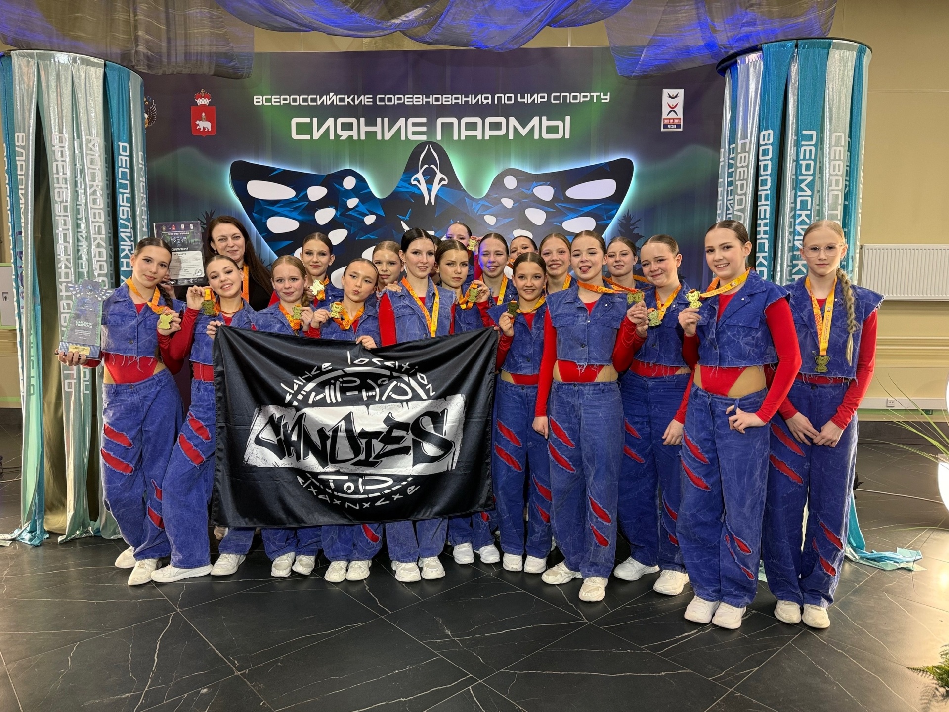 В категории "Чир-хип-хоп. Группа" среди юношей и девушек 12-14 лет победителями стала сыктывкарская команда "Кэндис", представляющая региональную "Спортивную школу "Юность".