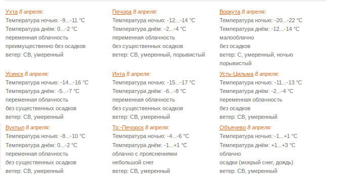 В республике 8 апреля в северных и центральных районах переменная облачность, сообщает Коми ЦГМС.