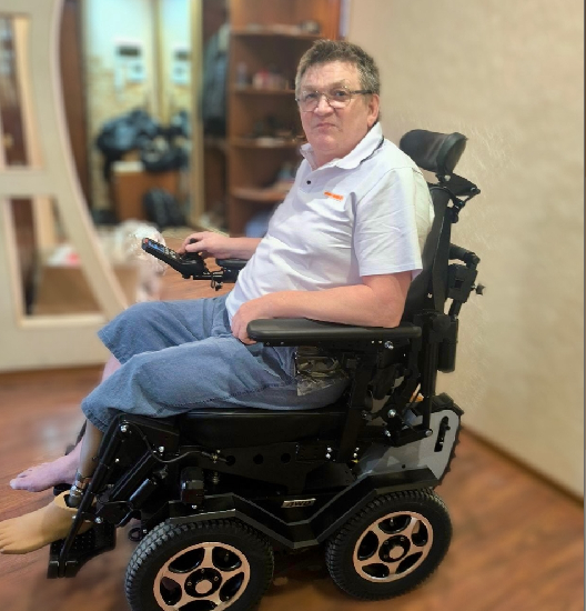 У Александра Токарева - спинальная травма, осколочное ранение позвоночника. Он передвигается исключительно на коляске. Для него выход на улицу был настоящей проблемой: несмотря на то, что живёт он на первом этаже, ему необходимо было преодолевать лестницу - без посторонней помощи он сделать это не мог. Сейчас всё иначе. Филиал фонда тоже помог Александру получить шагающую кресло-коляску. Теперь он самостоятельно может выезжать на улицу - главное, безопасно, так как такая коляска минимизирует риск падения и травм при передвижении по неровным поверхностям. Это не просто вопрос комфорта - это возвращённое чувство свободы и медицинская необходимость.