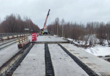 Мост длиной 51,16 метра расположен на третьем километре дороги Усть-Кулом – Усть-Нем – Мыелдино от автомобильной дороги Сыктывкар - Троицко-Печорск. Специалисты подрядной организации ООО "Мостовик" выполнили расстановку технических средств организации дорожного движения, осуществили демонтаж асфальтобетонного покрытия, выравнивающего и защитного слоев, разборку межбалочных швов (правая сторона, крайние пролеты).