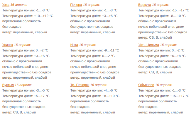 Прогноз погоды по республике на 16 апреля подготовил Коми ЦГМС.