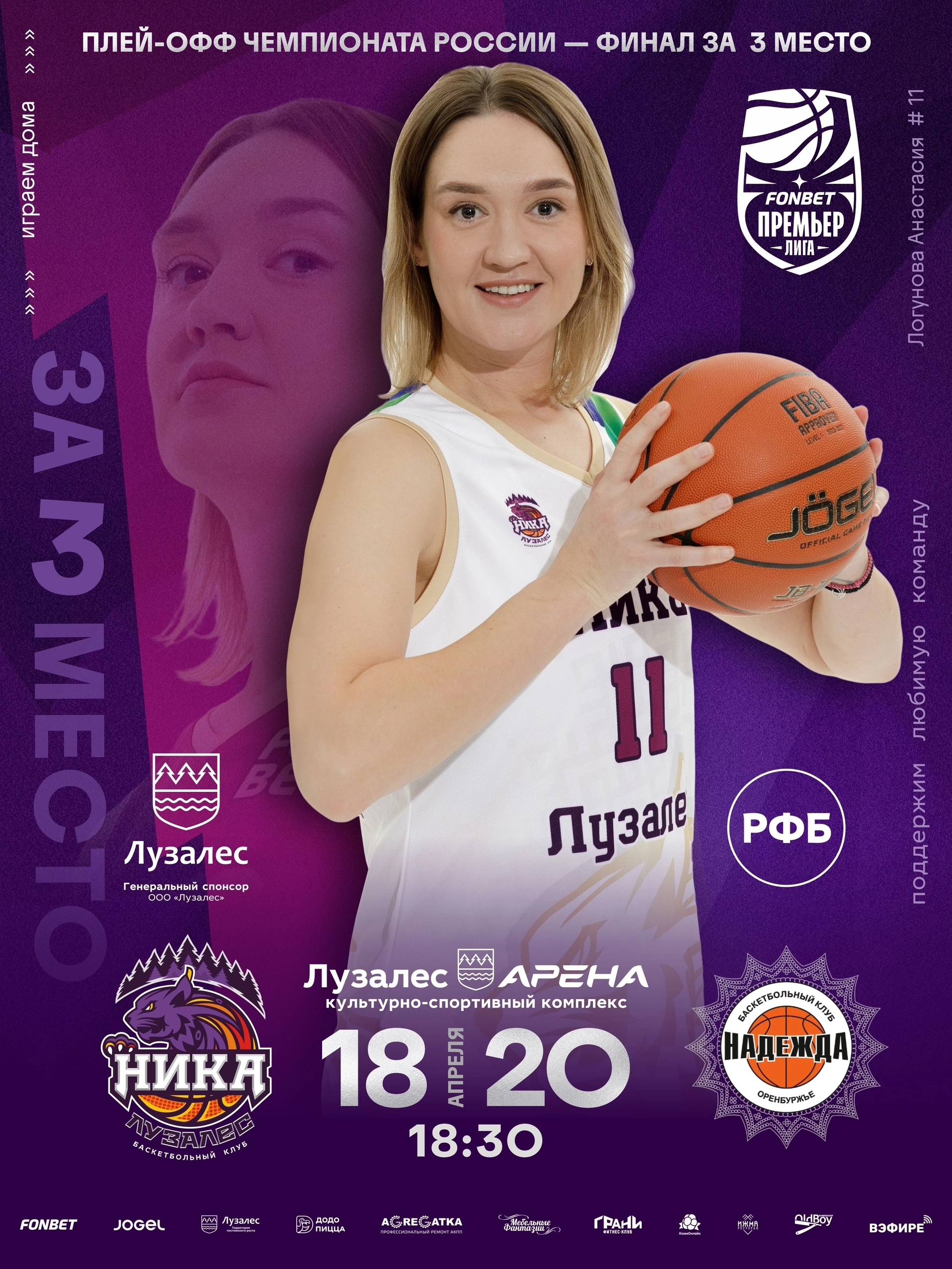 18 и 20 апреля состоятся игры за третье место в чемпионате России по женскому баскетболу "НИКА-Лузалес" (Сыктывкар) VS "Надежда" (Оренбург).