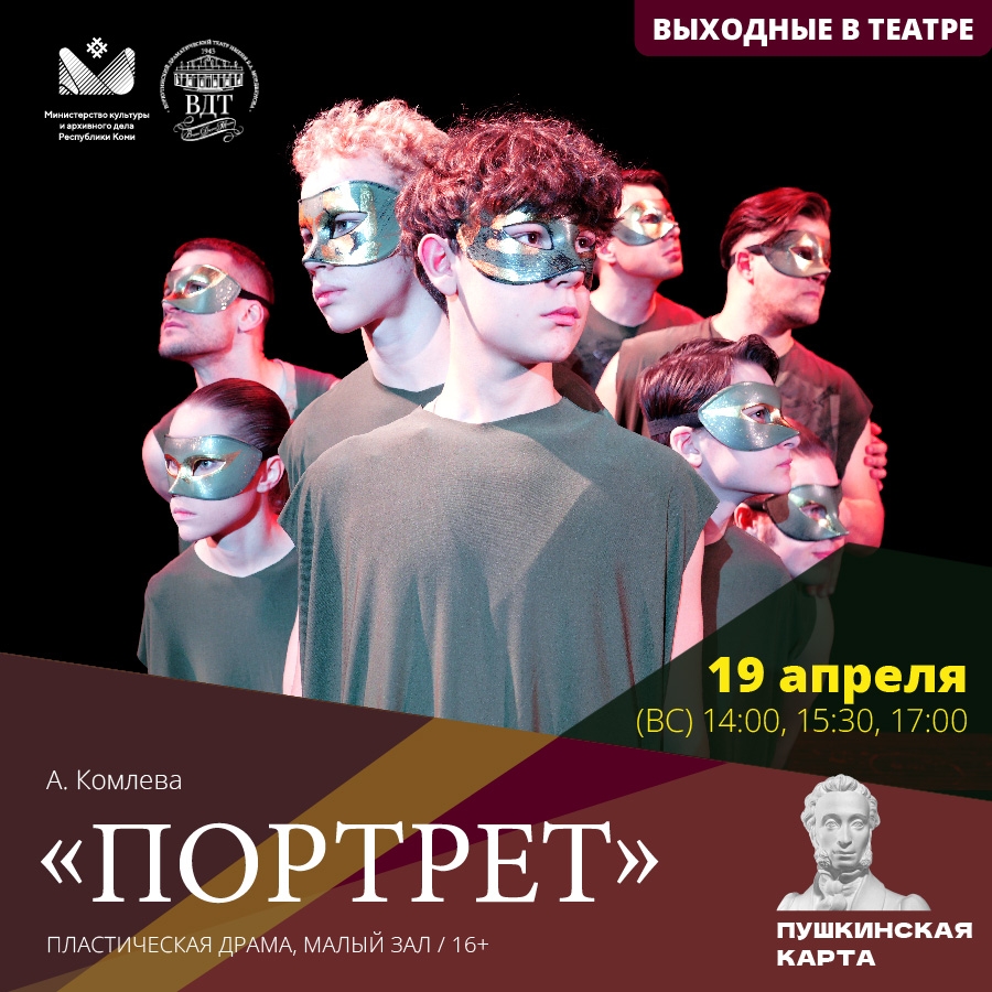 Воркутинский драматический театр имени Б.А. Мордвинова в 14:00, 15:30 и 17:00 покажет пластическую драму "Портрет" (16+).