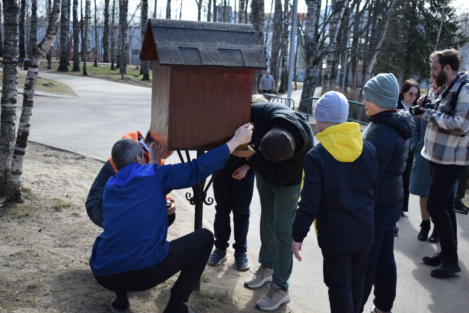 Домик в Мичуринском парке стоял с 2021 года. Неравнодушный житель города Василий Демидович заметил поломку и выдвинул инициативу — починить домик своими силами. Он обратился к руководству Специальной коррекционной школы №40, которое охотно поддержало его предложение. За работу взялись ученики 3, 4 и 9 классов. Один из ребят поделился, что задание для него было несложным, но отняло много времени. Теперь Василий Демидович является попечителем книжного домика в Мичуринском парке и следит за его состоянием.