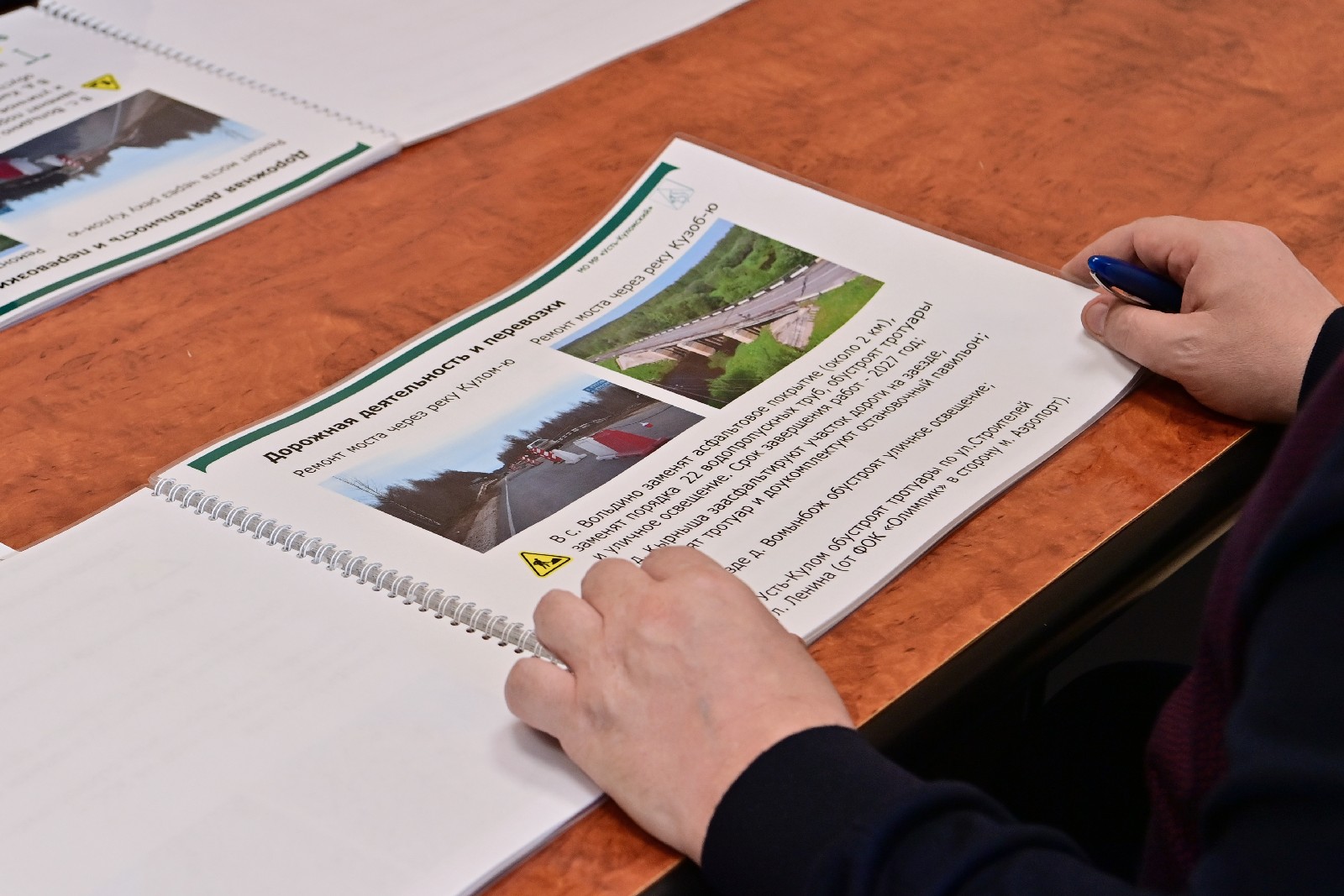 Одним из приоритетов является капитальный ремонт республиканских дорог и мостовых сооружений. В селе Вольдино ведётся комплексное обновление участка дороги: замена асфальтового покрытия и водопропускных труб, обустройство тротуаров и современного уличного освещения. Работы рассчитаны на 2026–2027 годы. В Кырныше заасфальтируют участок дороги на заезде в населённый пункт, обустроят тротуар и доукомплектуют остановочный павильон.