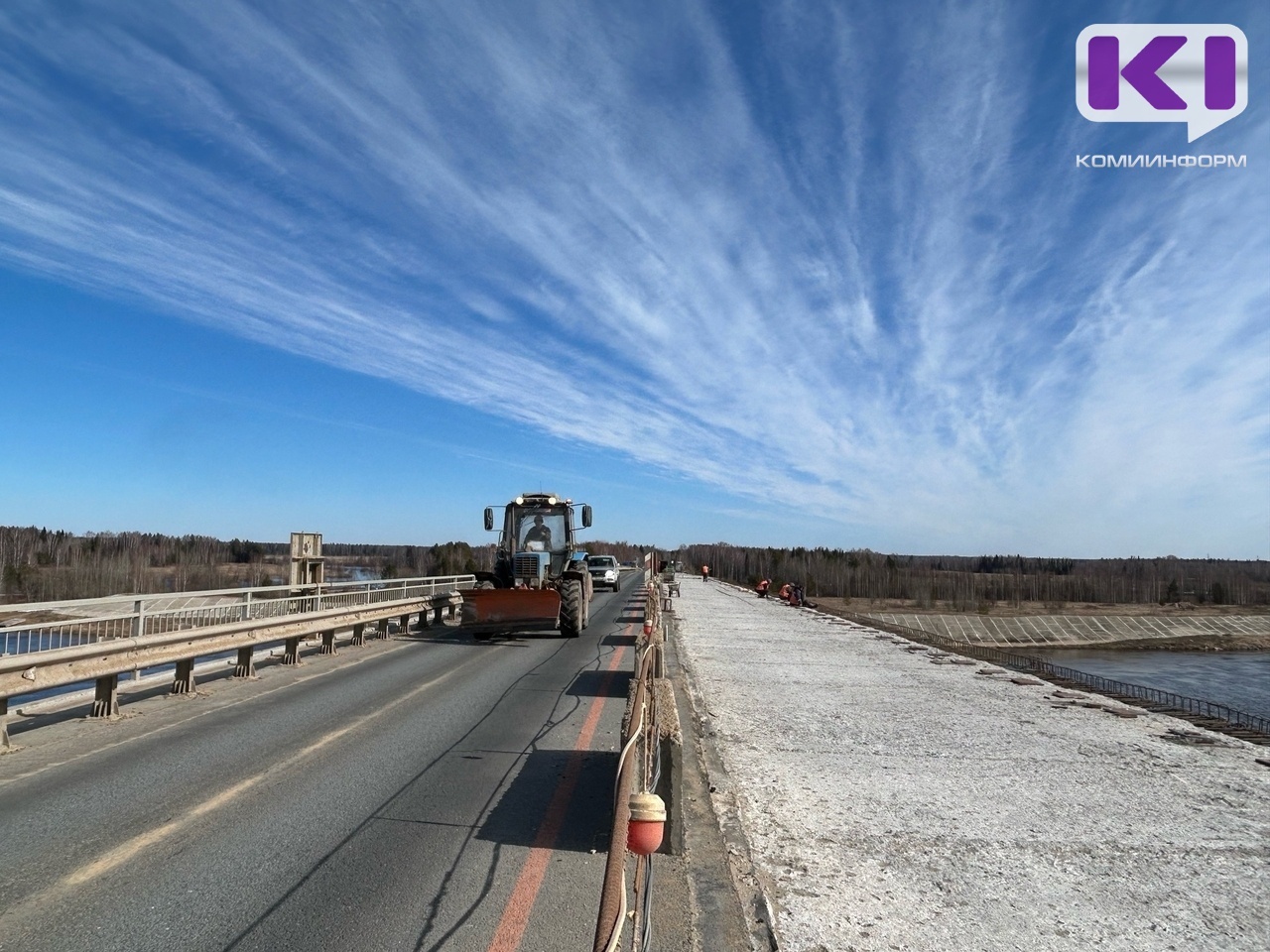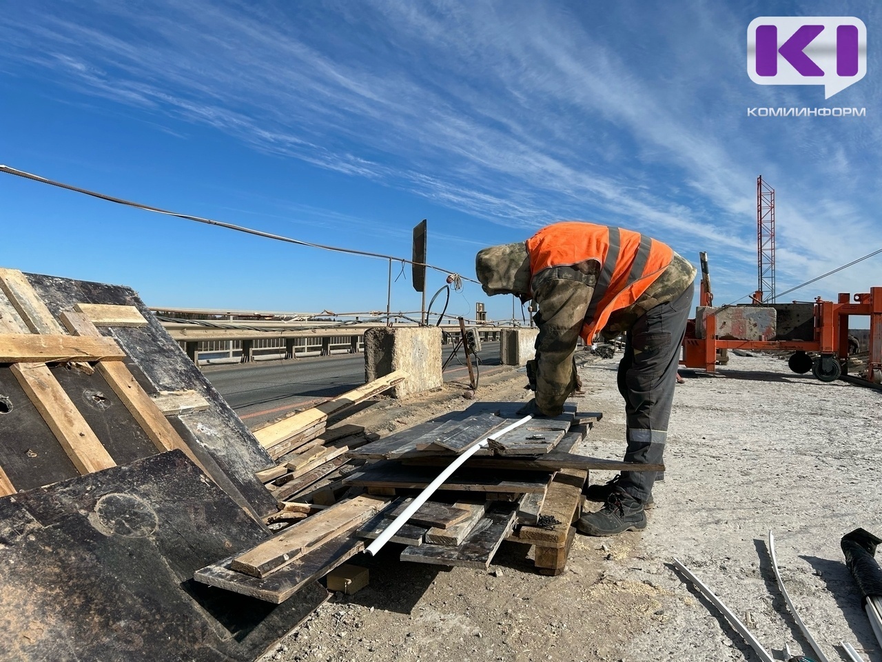 Ремонт Корткеросского моста через Вычегду, построенного в 1982 году, завершат в октябре 2026 года. Из-за недобросовестного подрядчика, который не справился с работами, был потерян примерно год, однако с приходом нового исполнителя процесс сдвинулся с мертвой точки - сейчас работы на правой стороне моста кипят.