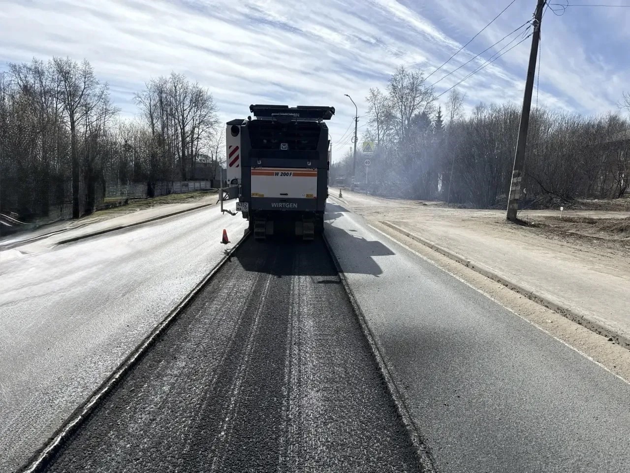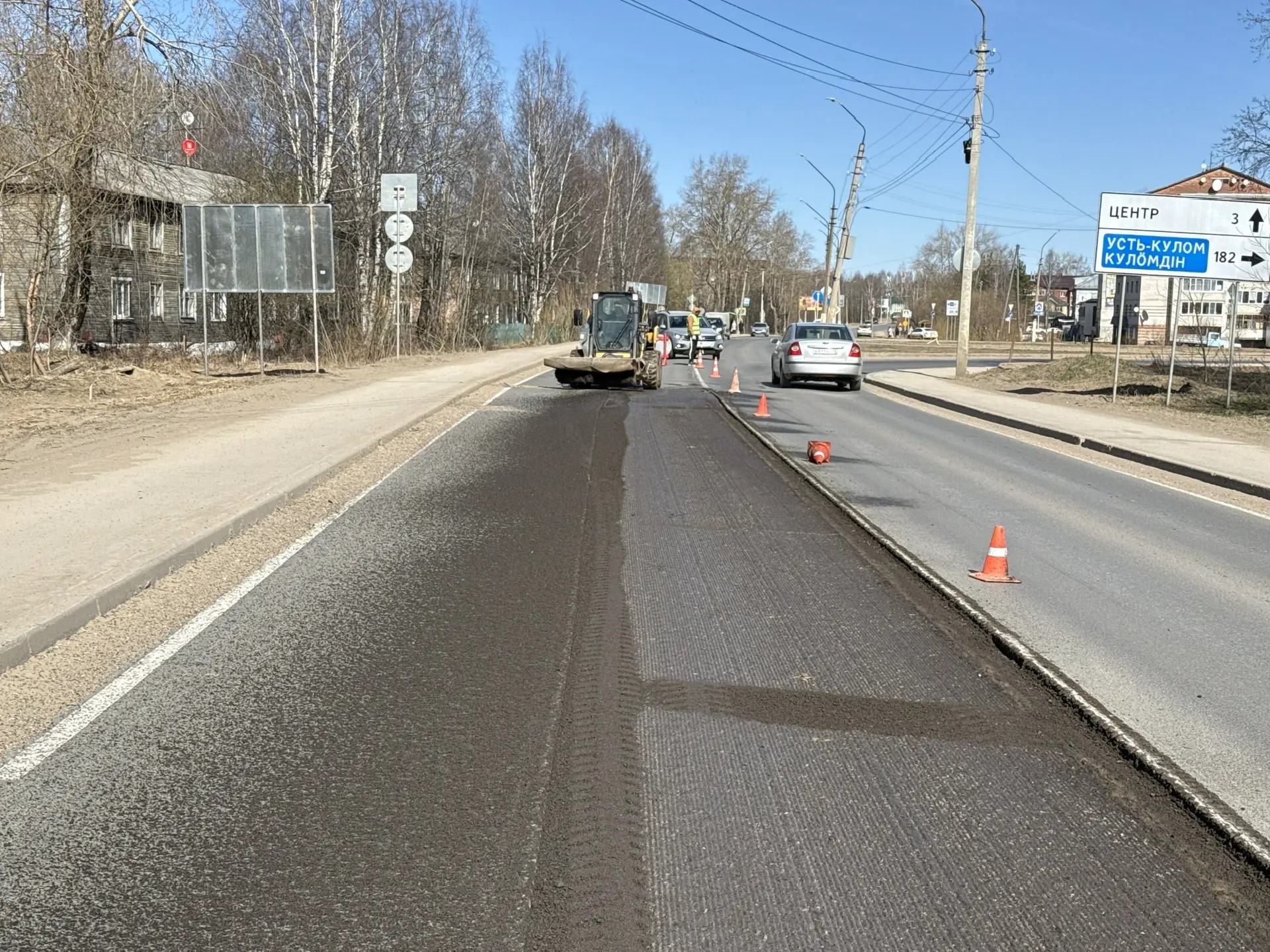 Подготовительные работы уже ведутся: устанавливаются временные дорожные знаки для организации движения и проводится разбивка оси трассы. Начаты работы по фрезерованию покрытия, демонтаж и установка бортовых камней.