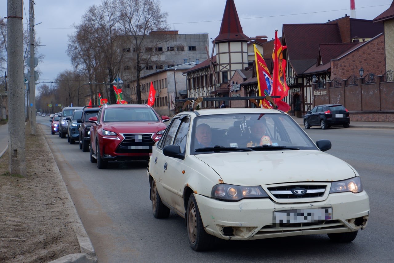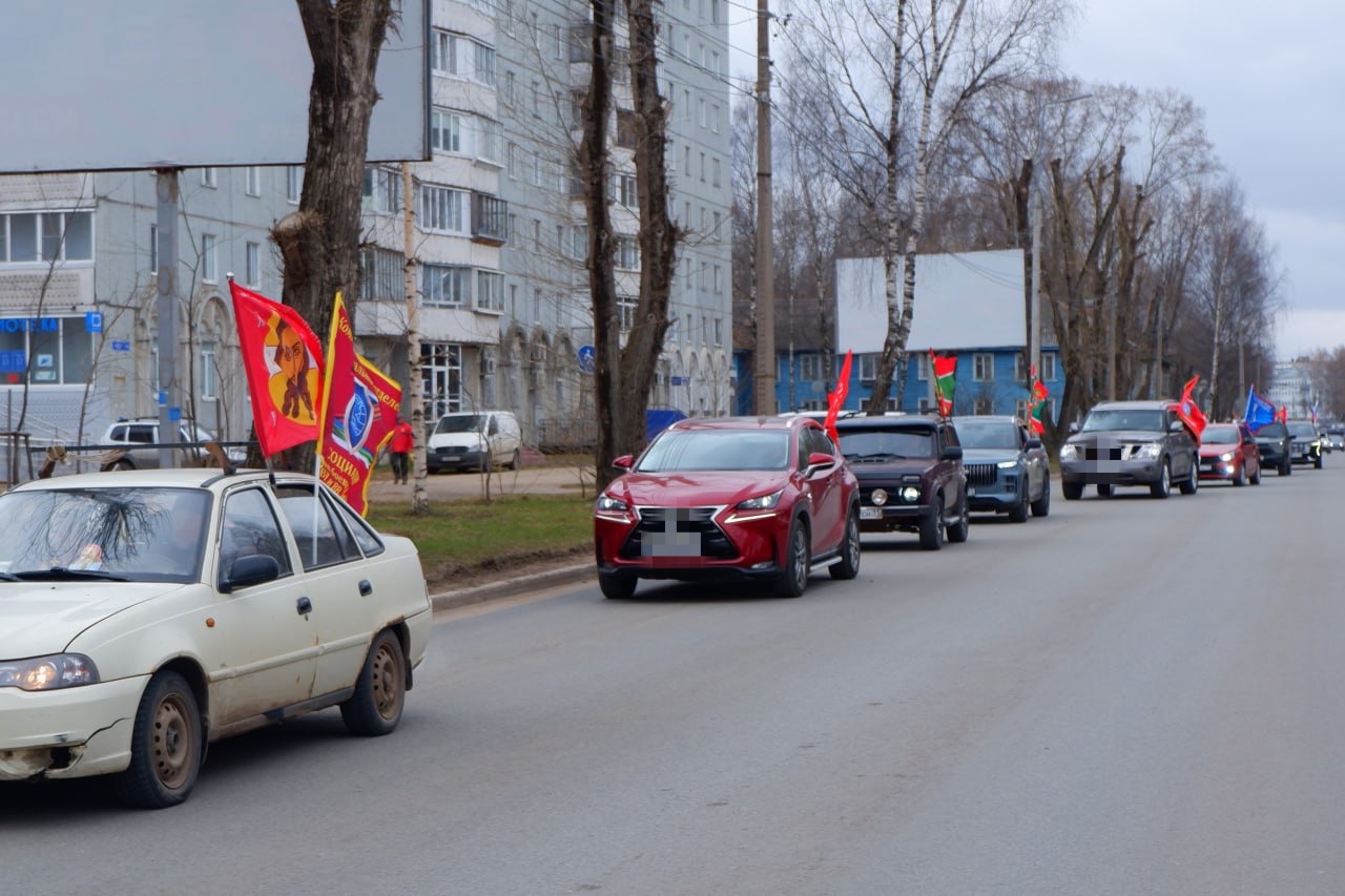 Автоколонна прошла по маршруту: "Вечный огонь" – улица Коммунистическая – Монумент "Трудовая слава" – Октябрьский проспект – Аллея Героев в Верхнем Чове.