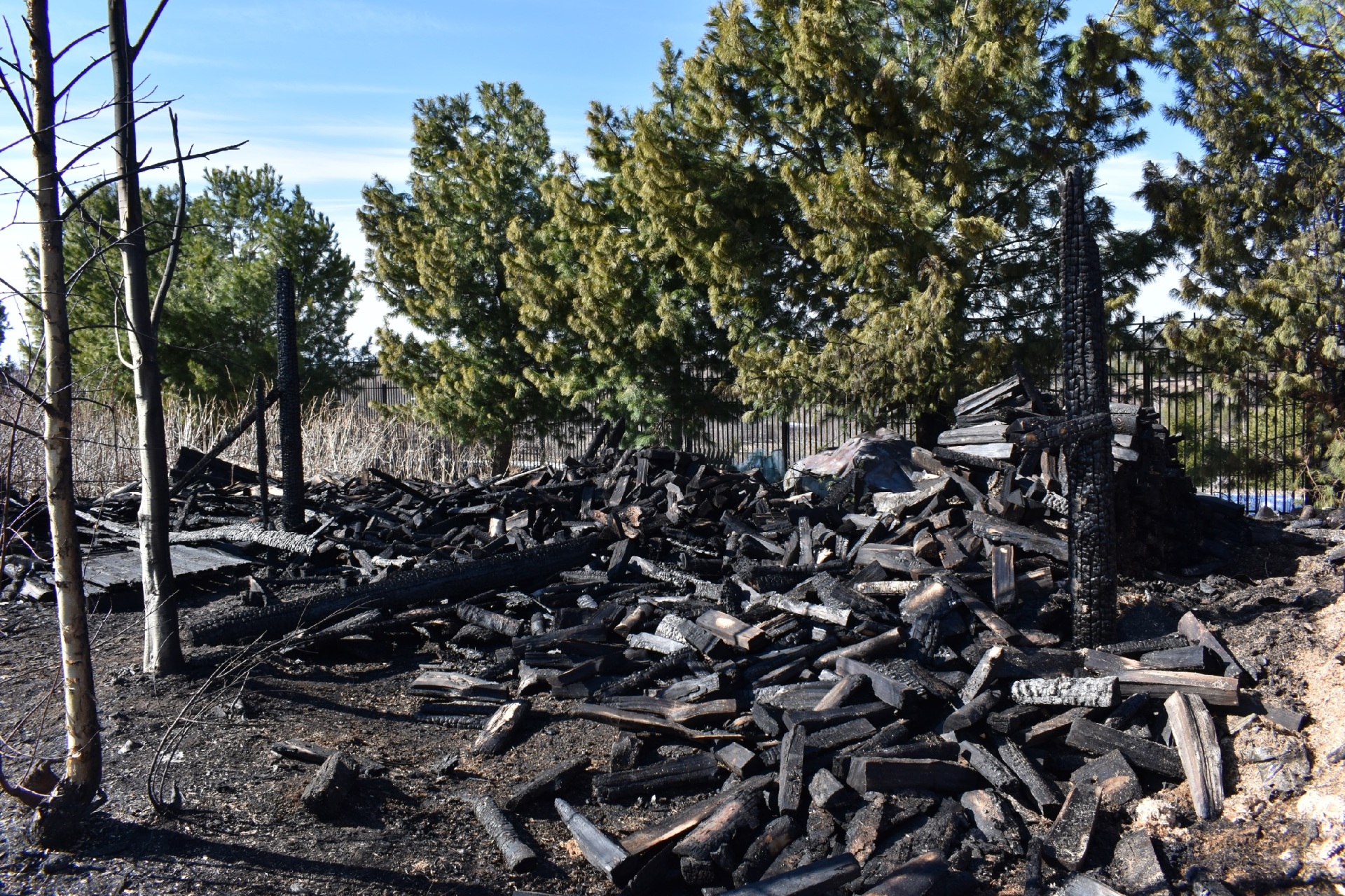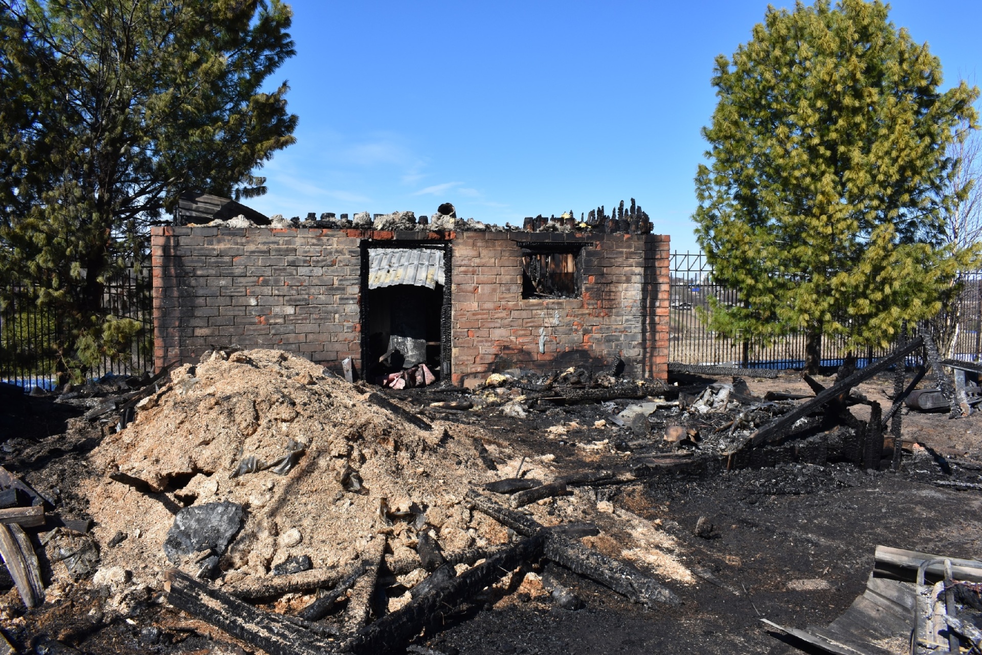 Температура в помещении была огромная, расплавились даже стекла, все сгорело. Остались кирпичные стены, обгоревший металл , обугленные доски и дрова.