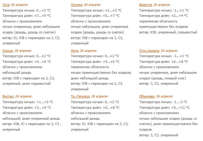 Погода в Коми 26 апреля: днем +7...+12°С, в Воркуте -1...+4°С