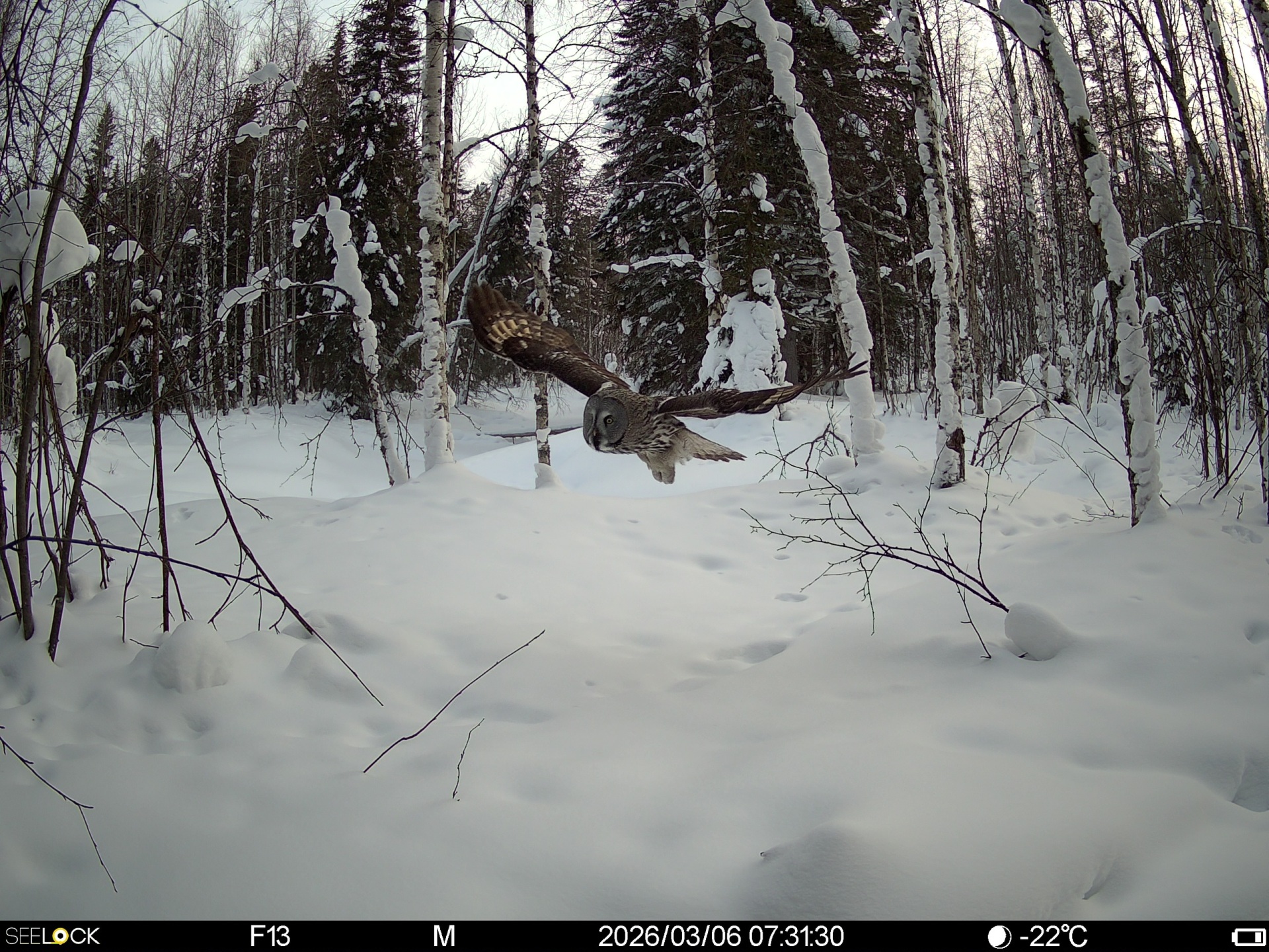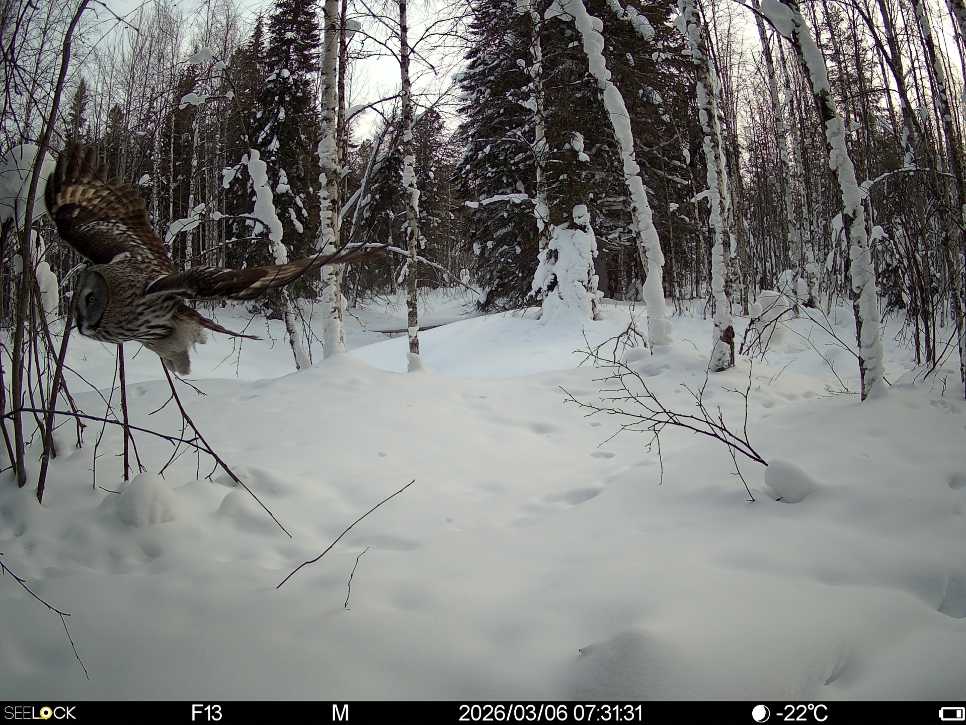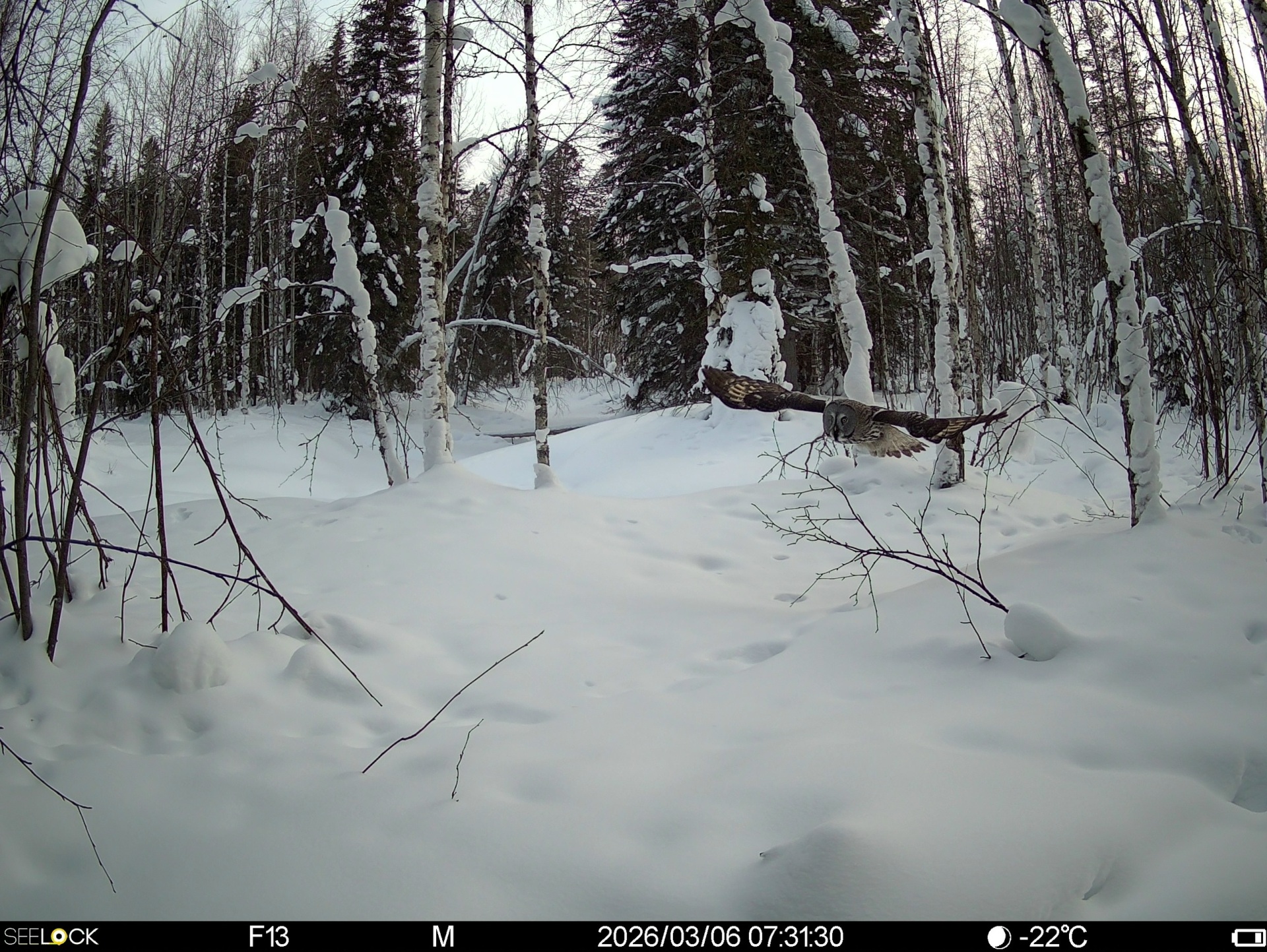 В апреле 2026 года фотоловушка в заказнике "Дзервад" запечатлела занесенную в Красную книгу Республики Коми бородатую неясыть, сообщает пресс-служба Минприроды РК.