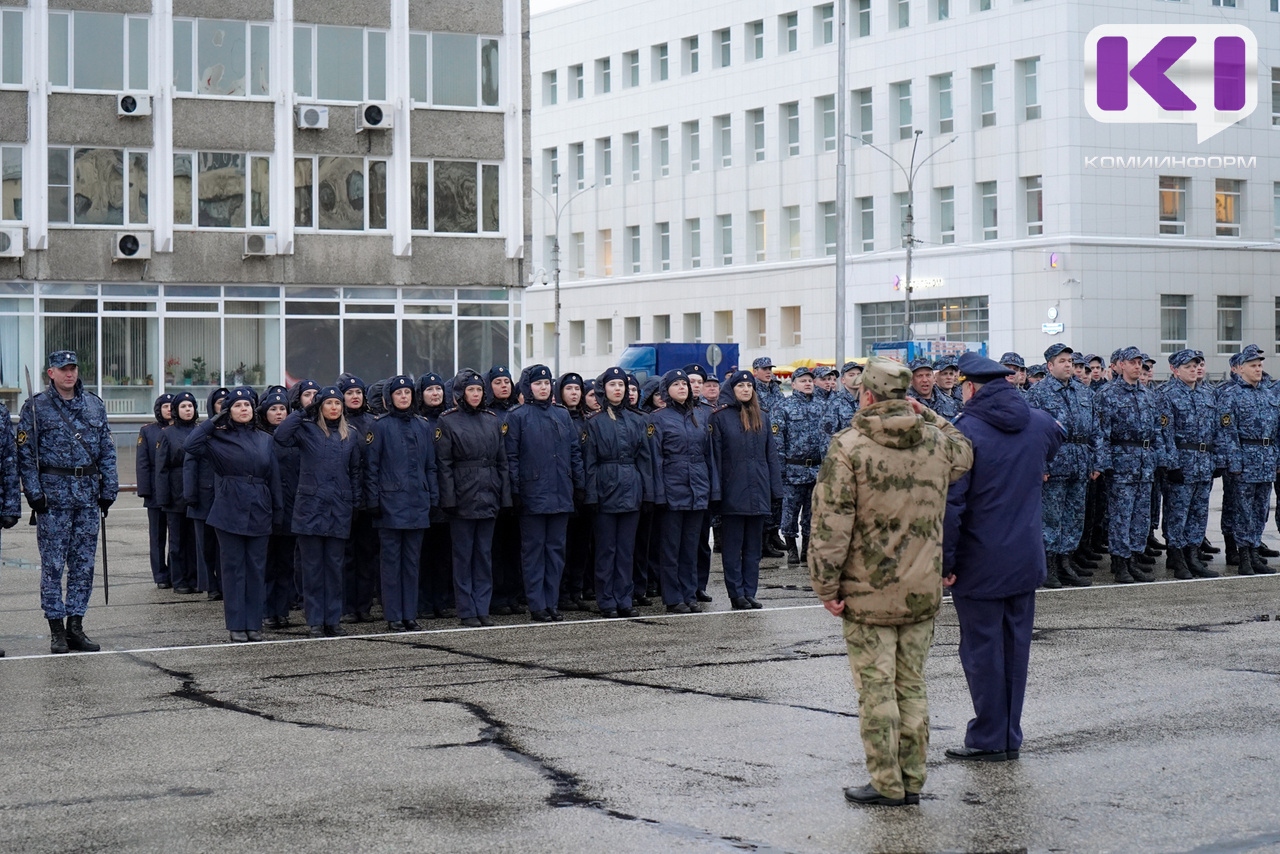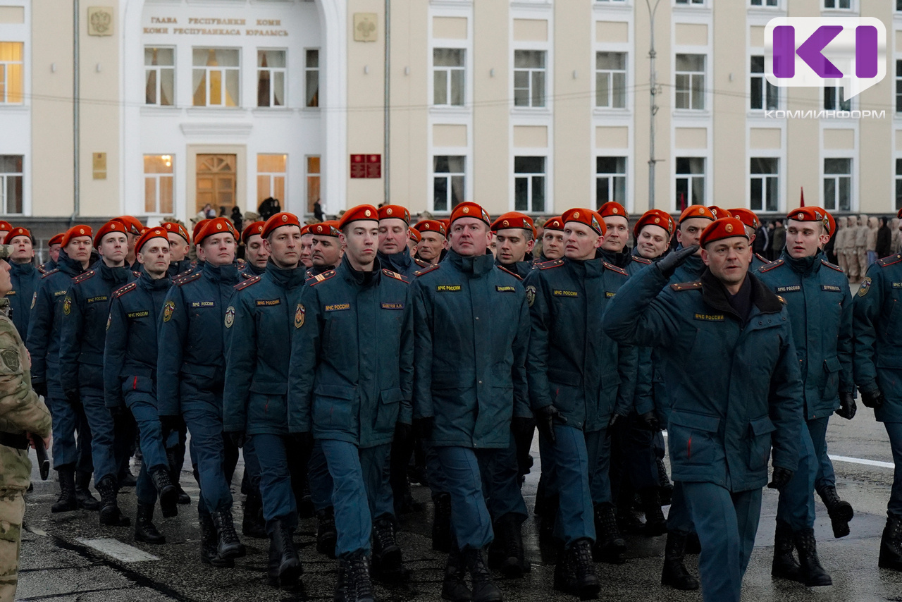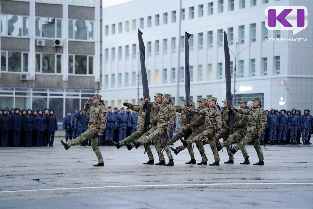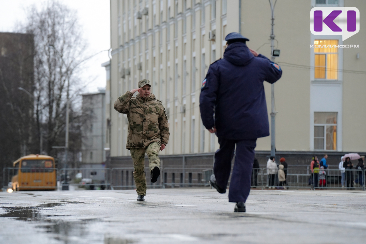 Затем перед зрителями прошел парадный расчет военнослужащих Центра подготовки личного состава Северо-Западного округа войск национальной гвардии. Ведущий отметил, что в строю, в том числе, участники специальной военной операции, а также сотрудники, награжденные государственными наградами. Далее - два расчета УФСИН по Коми, расчет управления судебных приставов по Коми и один расчет ГУ МЧС по Коми.