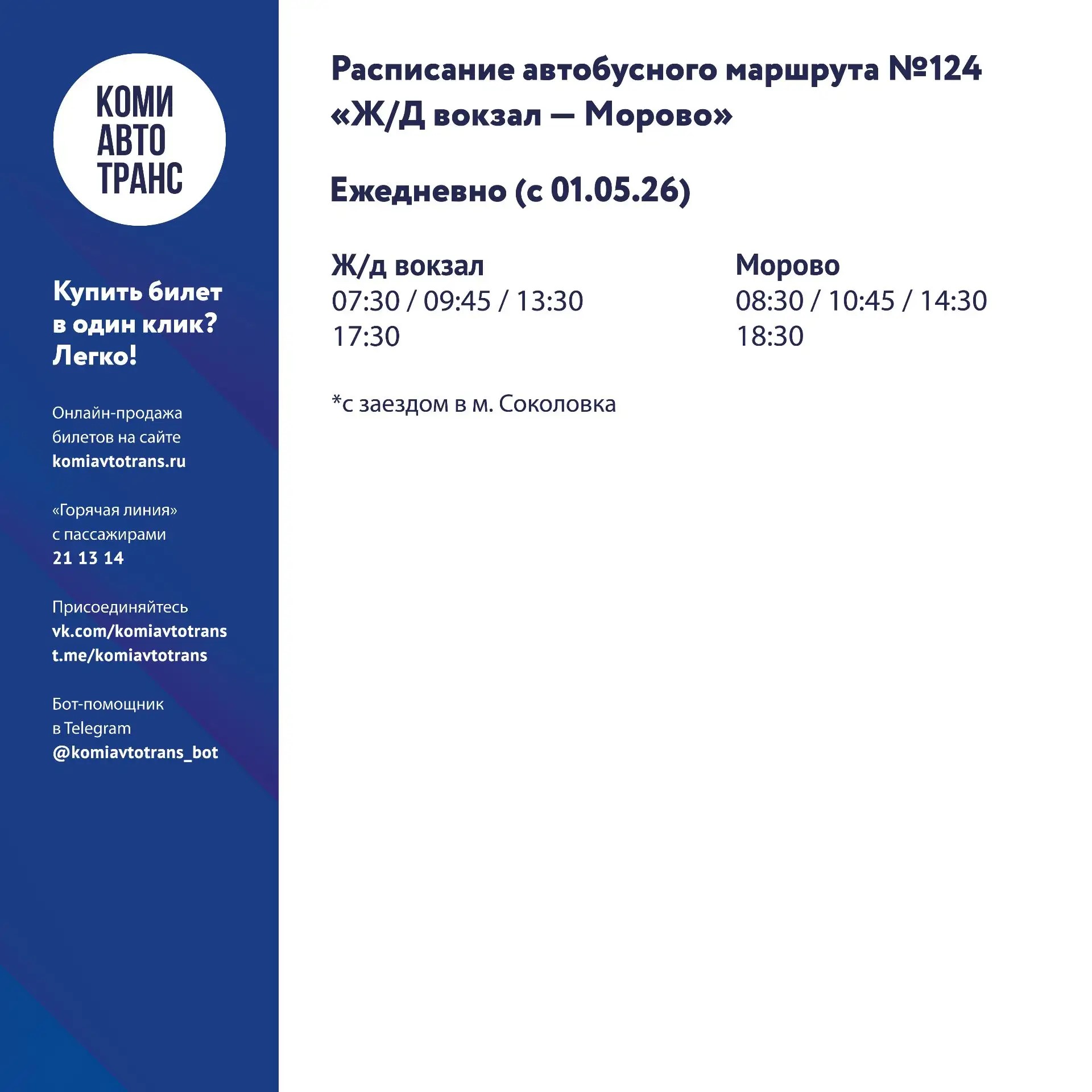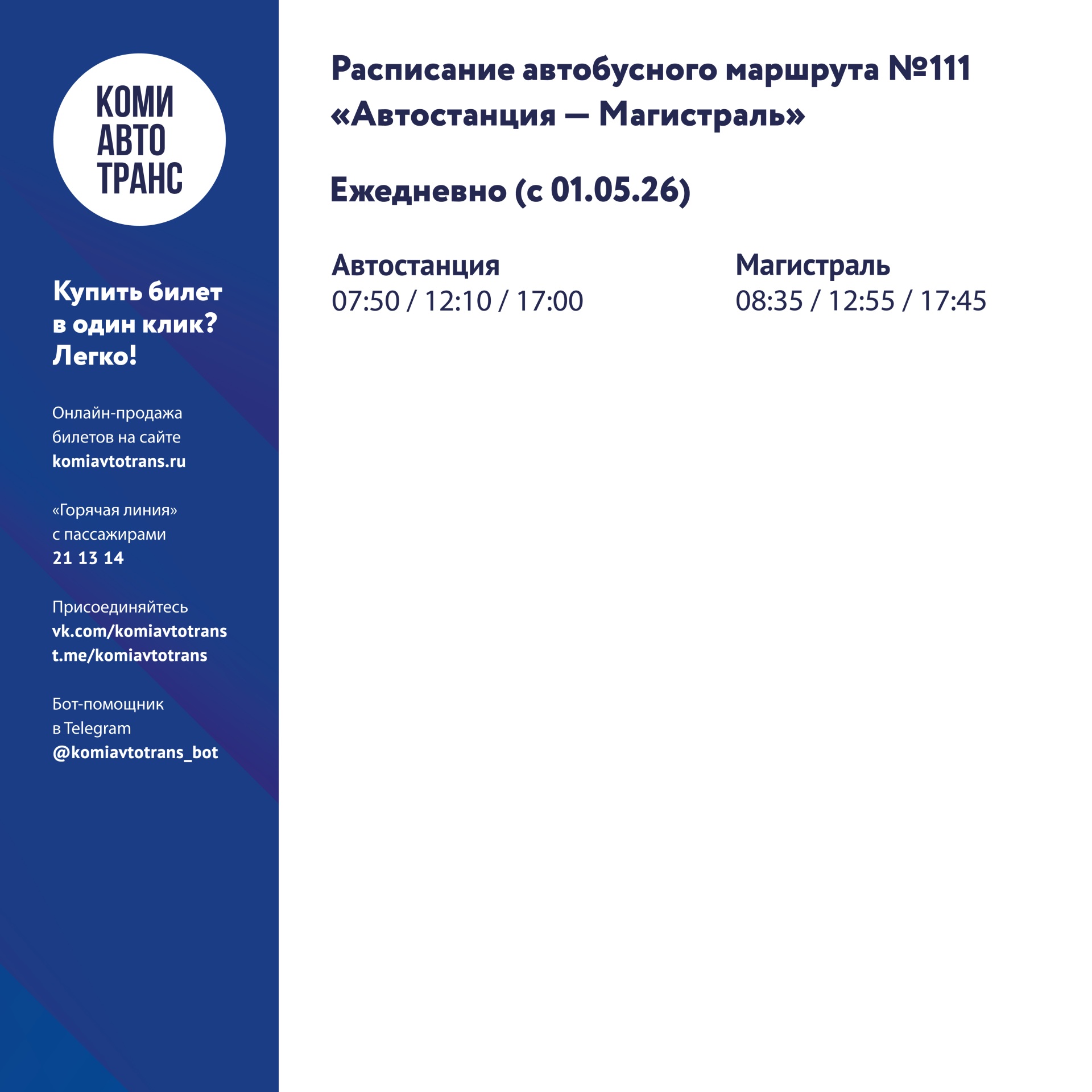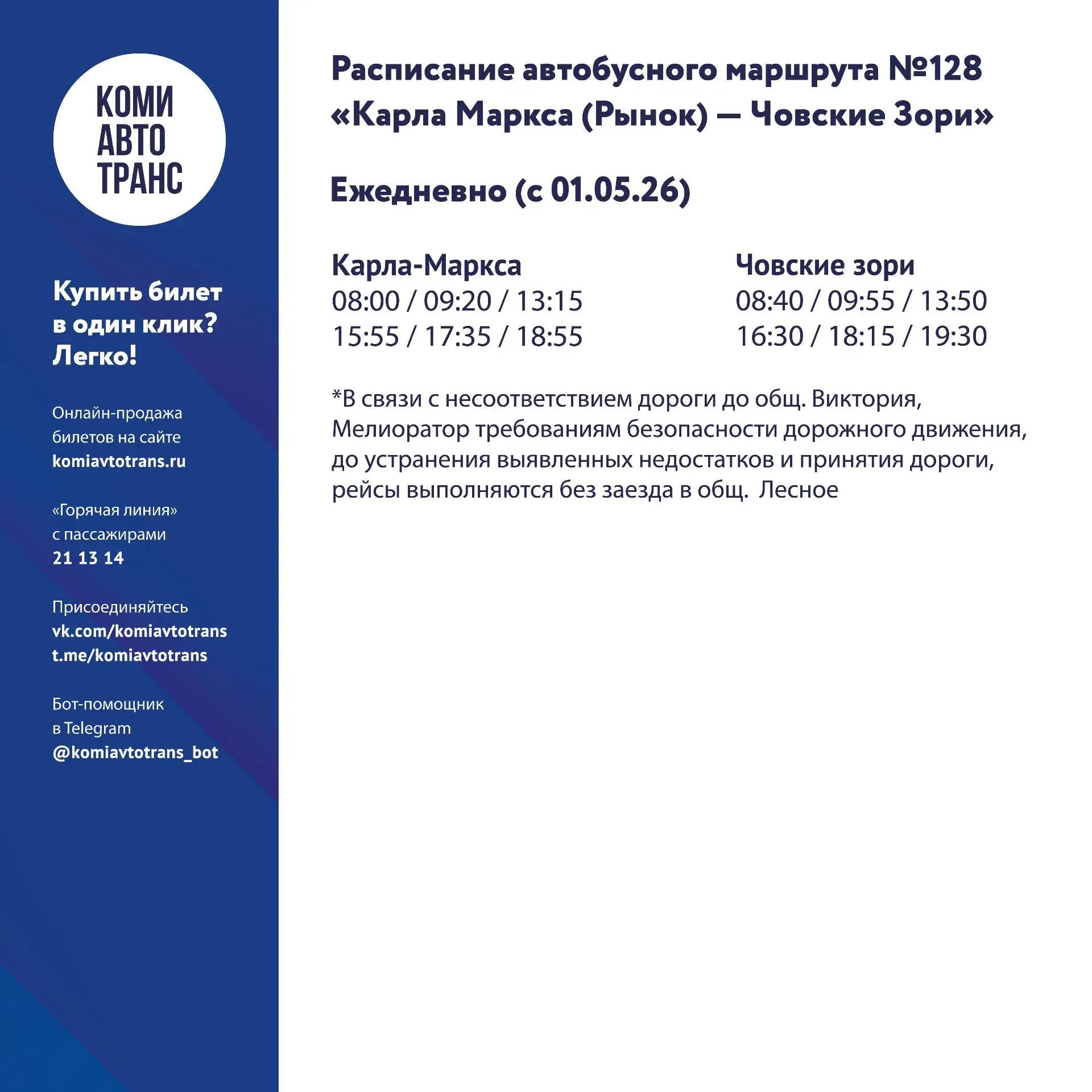 Как сообщает администрация Сыктывкара, автобусы будут курсировать без кондуктора. Для корректного учёта поездки необходимо прикладывать банковскую, социальную или транспортную карту. При входе в транспорт — чтобы зафиксировать начало поездки; при выходе из транспорта — чтобы рассчитать фактическую стоимость проезда. Если вы оплачиваете проезд за кого-то ещё (например, за члена семьи