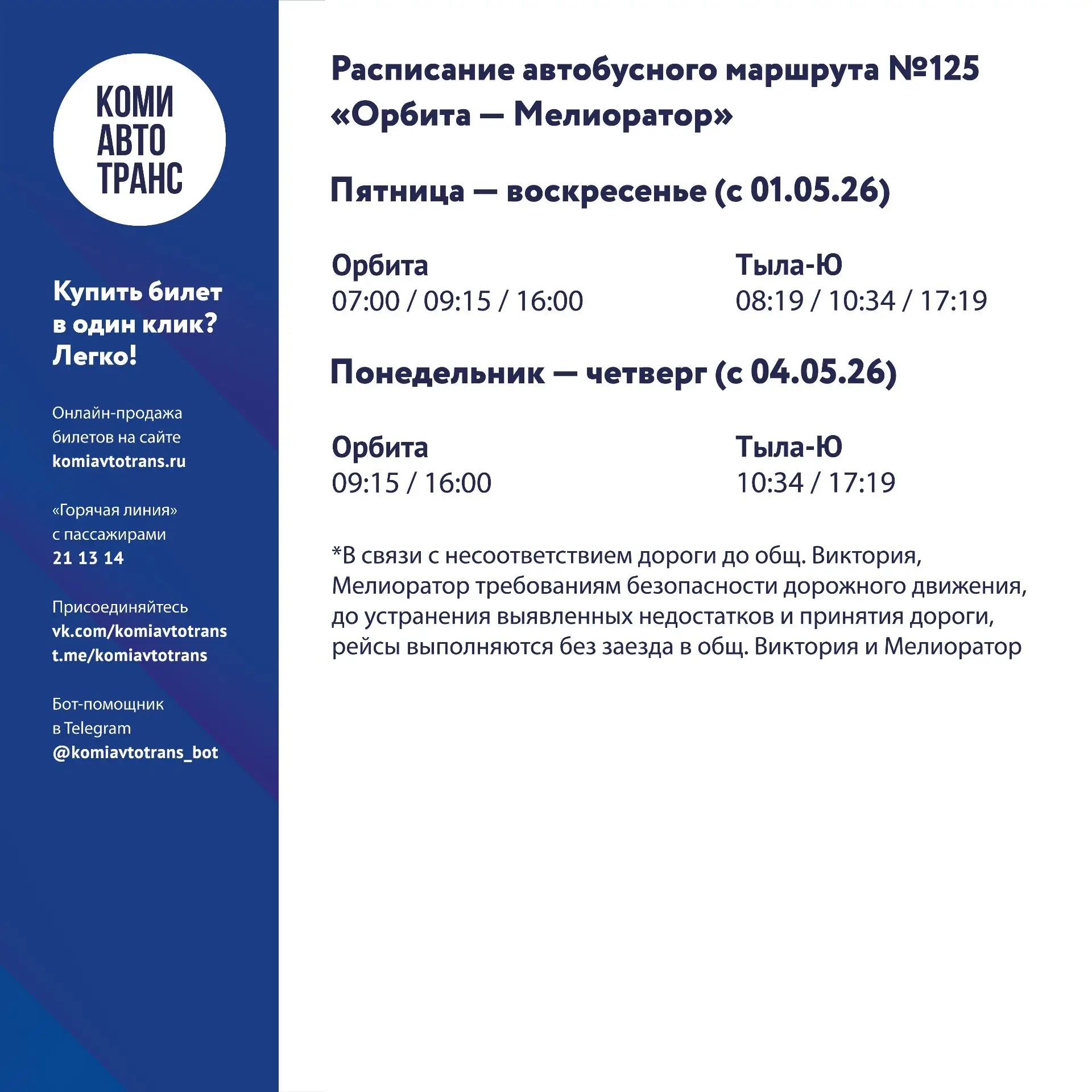 Количество рейсов №111, №124 и №125 сокращено.