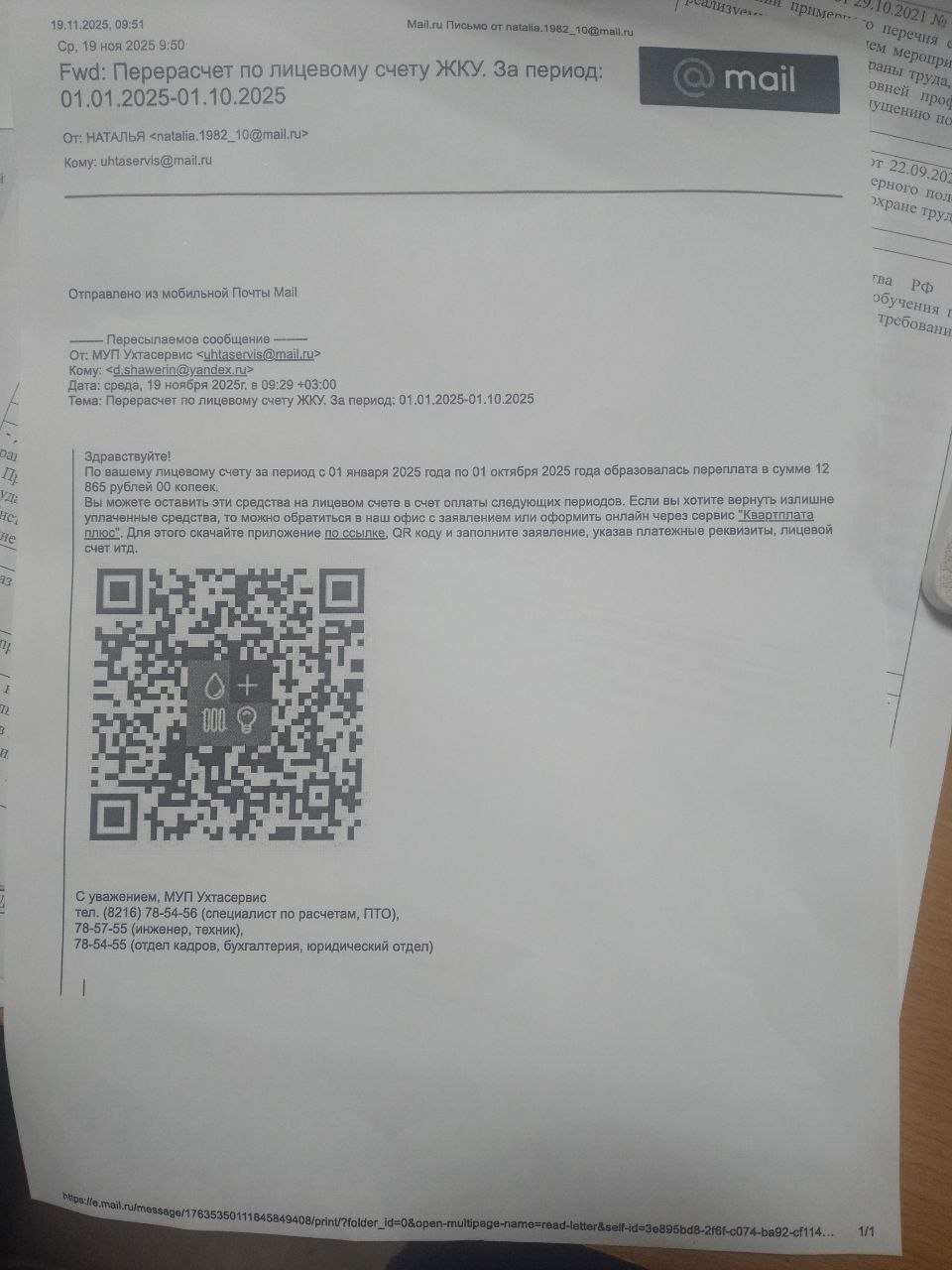 Клиенты компании получают сообщение о перерасчете по лицевому счету ЖКУ.