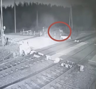 Хищник постоял у железнодорожных путей и скрылся в лесу.