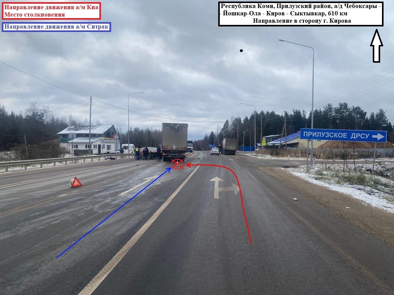 Разворот не удался: водитель Kia получила травмы при столкновении с грузовиком в Прилузском районе