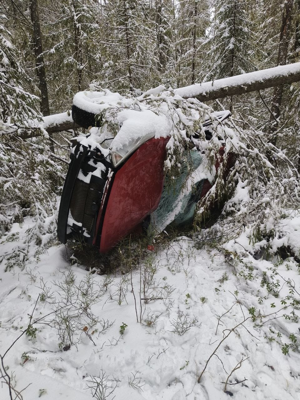 Водитель-новичок уснул и улетел в кювет на трассе "Вятка" в Прилузье