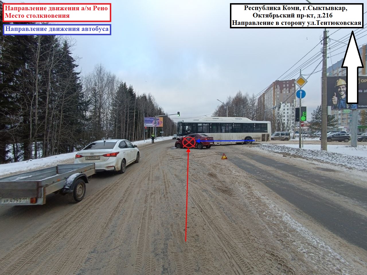 На Октябрьском проспекте в машину врезался Nissan Note с прицепом.