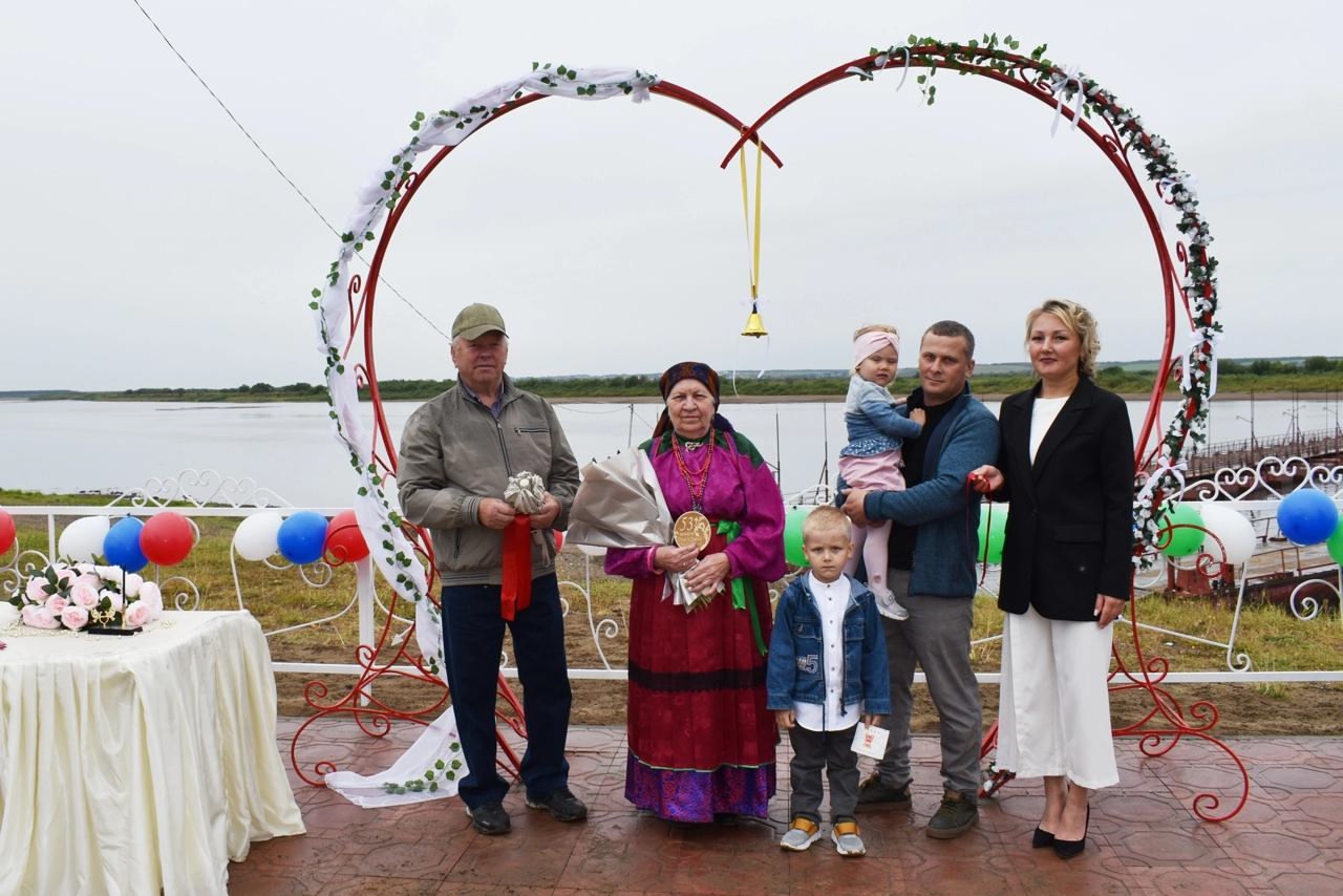 Кованная арка в виде сердца с колокольчиком – подарок всем молодоженам Ижмы и заречья в День Республики Коми, обустроенный за счет гранта компании ЛУКОЙЛ.